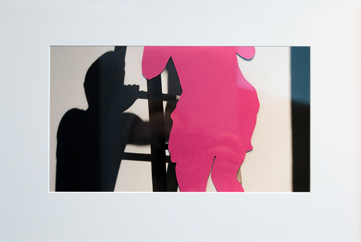 Manchmal also denkt man, | Serie 0, 2015 3 Collagen (Mischtechnik, Bleistift, Farbkarton und Passepartout auf Fotoprint, je 42,5 x 32,5 cm) / 3 Schriftbilder (Fotoprints, Passepartout)