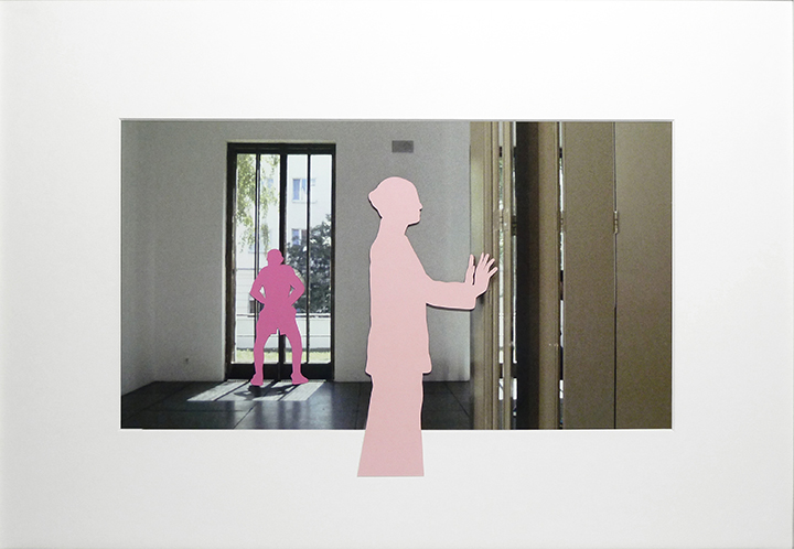 2 Serien Collagen und Schriftbilder zum Film Manchmal also denkt man, weil es sich bewährt hat. Wittgensteins Haus., AT 2016 Manchmal also denkt man, | Serie 1, 2016 5 Collagen (Mischtechnik, Farbkarton und Passepartout auf Fotoprint, je 56,5 x 39,5 cm) / 3 Schriftbilder (Fotoprints, Passepartout)